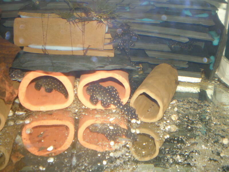 Neue Bewohner L 471 ein kleinbleibender getupfter Harnischwels der dem L 201 sehr ähnlich sieht aber viel schöner ist da die punkte größer sind -:)-:). Nachwuchs gibt's auch schon......................freu!.