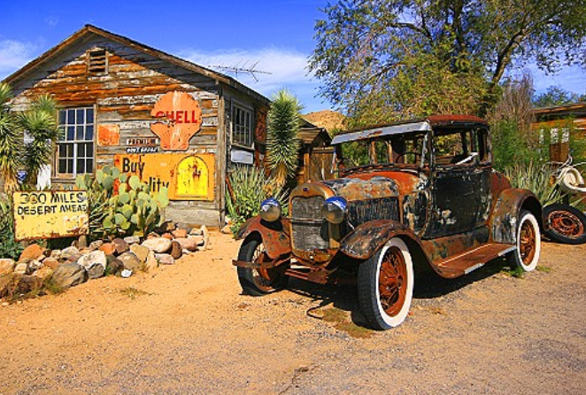 Über die Route 66 / Oatman Hwy zum "supercoolen" Cool Springs wo uns der Besitzer irgendwie "merkwürdig" erschien -:) über Kingman dem Paradies für 66 Souvenirjäger zur genialen Schrottsammlung Hackberry General Story wo'st vor lauter Alteisen den Schrott nicht mehr siehst, leider ohne das Wahrzeichen die rote Corvette. Weiter über Peach Springs mit den Grand Canyon Caverns und der Zufahrt zum Colorado River über die Diamond Creek Road. Nach einer gemütlichen entspannten Fahrt erreichten wir Seligman wo wir bei Lilo's Saloon einen Pflichtstop zur Nahrungsaufnahme einlegten. In Williams den Roundtrip durch Bearizona na ja die Kohle könnte Mann sparen wenn Mann will, wir wollten nicht-:)