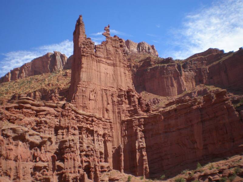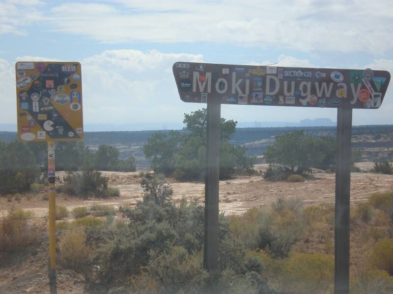 Eine der gefährlichsten Strassen der Welt (lt. TV Doku -:)-:)-:)) hoch zum Moki Dugway haben wir auch riskiert. Die Aussicht entschädigt für das hohe Risiko -:). Genächtigt wurde im San Juan Inn Motel und diniert NICHT beim Swinging Steak ein mal Holzkohlenfleisch mit Bohnen genügt. Die letzten drei Bilder: Four Corners, Four Corners mit AL und Four Corners mit der gesamten Reisegruppe im Regen!! Irgendwann ging's weiter Richtung Moab, Arches, Titan, Corona, Mesa usw.