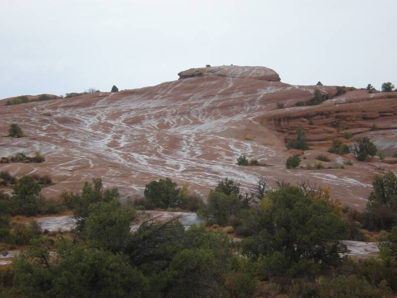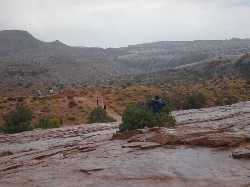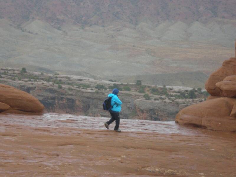 Nachdem wir den nördlichsten Punkt der Reise erreicht hatten, sind wir sind nach rechts zu den Hikers obwohl AL war schon beim Überlegen ..........-:) Im Anschluss zum nächsten Highlight dem Weltklasse Delicate Arch natürlich bei .................................... Regen!! War uns genau "wurscht" es gibt kein schlechtes Wetter nur schlechtes Equipment!