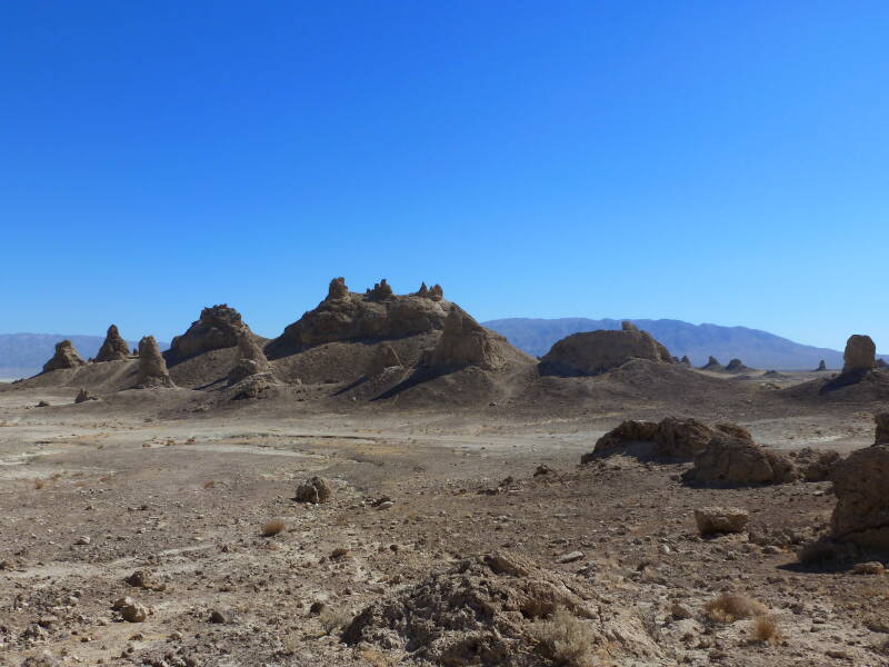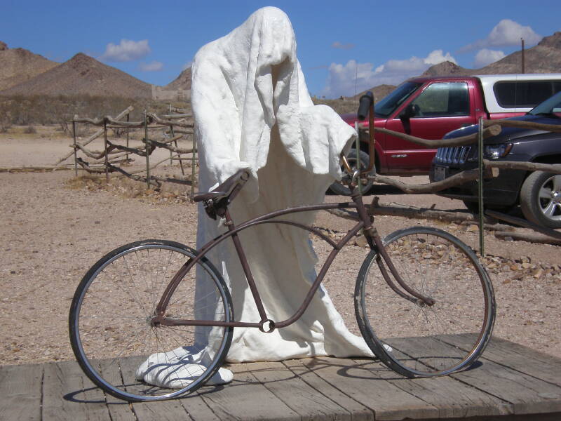 Temperatur angenehm daher short Break in Rhyolite beim Bottle House und den Acryl - Geistern, was wäre eine Ghost Town ohne Ghost...............................sinnlos! -:)-:) Irgendwann war auch hier alles gesehen und vorbei an den Charcoal Kilns und der Zufahrt zum Telescope Peak ging's über die Trona Wildrose Road nach Weltklasse Trona zu den Pinööööökls ausgesprochen, geschrieben Pinnacles. Da glaub'st du bist im outer space auf einem neuen Planeten und der, die oder das Alien kommt gleich um's Eck.
