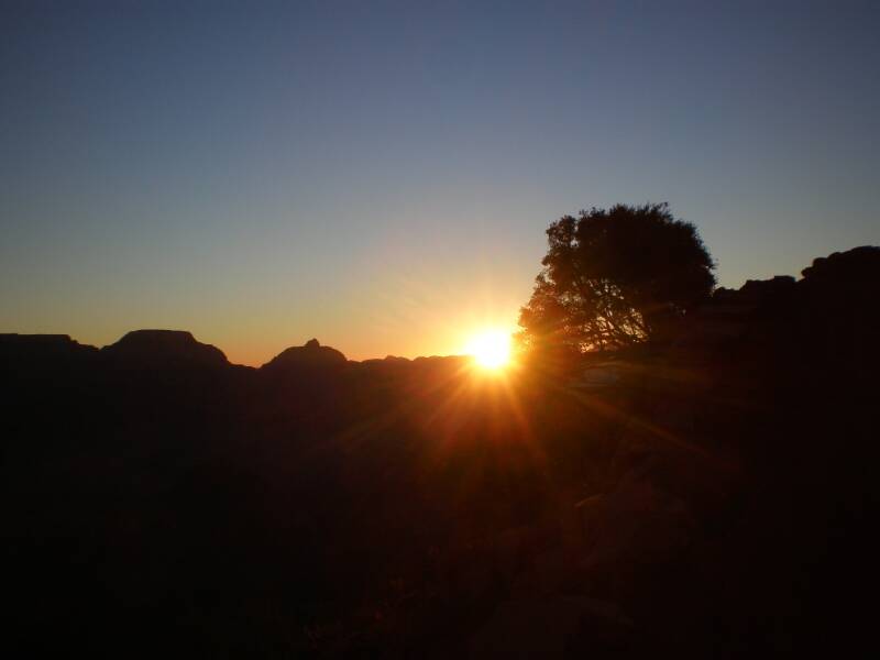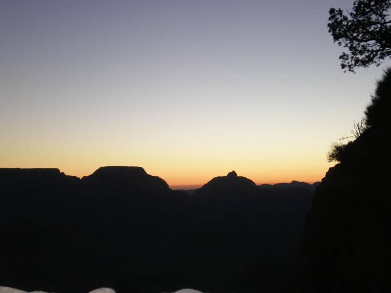 Am Anfang steht immer ein Weltklasse Breakfast um diese Zeit Marke homemade mit Löskaffe aus AUT. Dunkelschwarz und die Wanderamigos in Lauerstellung, damit ja kein Sonnenstrahl verpasst wird. Unten: langsam wird's was, bzw. es werde Licht im GC oder einfach nur sunrise in Arizona ein Jahrhunderterlebnis und ich war dabei -:)