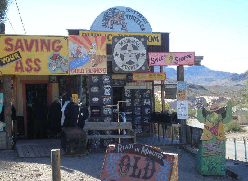 Nach Schlaf, Poker und einem genialen Breakfast in Laughlin ging's über die Berge auf dem "urgefährlichen" Oatman Hwy in das Kaff der Esel. Thema Gefahr im USA Urlaub: ich bin berufsbedingt nicht besonders ängstlich, Gefahr habe ich außer dem Verkehr in LAX noch keine gesehen, von Kugeln durchlöcherte Schilder machen mir keine Angst, finde ich nur lustig. Von gefährlichen Situationen habe ich bis jetzt nur auf einer Homepage gelesen: Straßenlaternen ausgefallen, schlafende Penner in Hauseingängen haben wir uns unwohl gefühlt, sind wir gleich weiter und so Schwachsinn . Na ja, man kann auch an Todesangst sterben -:) Ich habe auf 12 Trips nur freundliche Amerikaner kennengelernt, vielleicht liegt's auch an einem selbst, wie sie reagieren die Amis. nicht beeinflussbar sind immigration officer -:) da bemühe ich mich immer besonders freundlich zu schauen, auch wenn's schwer fällt -:)